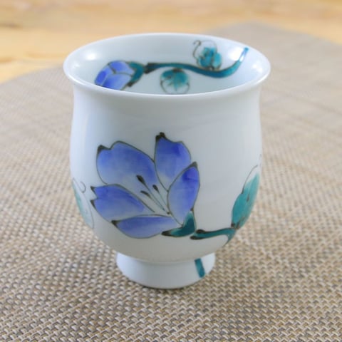 はるかという湯呑も弊社オリジナルデザインですが、こちらの花は季節関係なく、一年中お使いになれるように架空の花を描いていただきました。